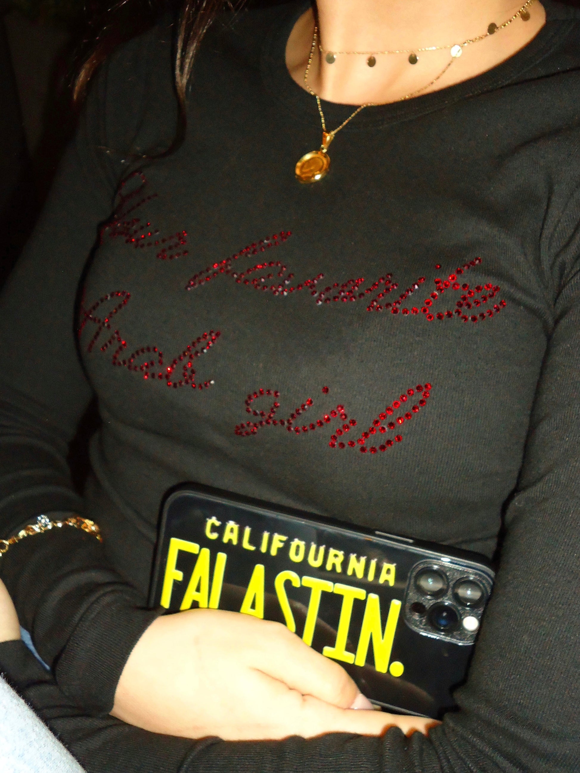 50% of profits from this shirt will be donated to a Legal Aid Fund for Palestinian Student Activists.